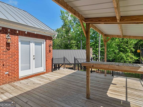 Welcome to this one-of-a-kind 4-sided brick Colonial estate, perfectly nestled on 15 breathtaking acres with a private pond, an architect-designed outdoor living space, and a resort-style heated saltwater pool. We are located in the Brooks area of Spalding County. Offering timeless design, top-tier craftsmanship, and unmatched versatility, this home is ideal for multigenerational living, entertaining, and everyday luxury. Step through the grand entryway into a soaring two-story foyer featuring an ornate curved staircase, a dramatic chandelier, and an arched art niche. On either side of the foyer are two flex rooms perfect for home offices, a gym, craft spaces, or playrooms-endless potential tailored to your lifestyle. The heart of the home begins with the formal dining room, complete with judges paneling, elegant trim, and custom shelving to showcase your finest china and heirlooms. From there, enter a true chef's kitchen featuring custom cabinetry, granite countertops, walk-in pantry, vegetable prep sink, and an oversized island with built-in dishwasher and main sink. No detail was spared-enjoy a 6-burner gas stove, grill top, double ovens, a built-in microwave, wine refrigerator, and ice maker. The brick-arched stove surround and built-in vent hood offer both style and function. Just off the kitchen, relax in the keeping room/sunroom with soaring vaulted ceilings and walls of windows overlooking your private backyard oasis. The adjacent family room features a two-story ceiling, gas fireplace, built-in TV surround, and rear staircase access. Upstairs you'll find 4 spacious bedrooms and 3 full bathrooms. The owner's suite is truly a private retreat-expansive enough for a king-sized suite, sitting or meditation area, and more. The spa-like ensuite includes slate floors, a fully tiled shower, a tile-surround soaking tub, a private water closet, and a large walk-in closet. All secondary bedrooms are generously sized and offer walk-in closets, while the upstairs laundry room adds convenience. The finished basement is ideal for in-laws or guests, featuring a full kitchen, dining area, living room, bedroom, bathroom, and separate laundry space. Additional garage space and dedicated storage rooms complete this level. Outdoor living is second to none. The saltwater fiberglass pool (with a 50-year warranty) boasts a hot tub, slide, tanning ledge, and waterfall features. The 18x18 covered pavilion, designed by Tempera Architecture, includes a large masonry fireplace, TV mount, and grilling area-perfect for hosting game day events or relaxing by the fire. Also included is a 40x60 workshop with electricity, water (stubbed for a toilet), a utility sink, and an upstairs office/storage loft-ideal for a home-based business, hobbyist, or serious DIYer. With heart pine hardwood floors throughout most of the main and upper levels, 3 garage bays, custom finishes, and unmatched outdoor amenities, this estate offers a rare opportunity to live, work, and play in your own private paradise.