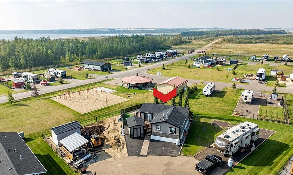 Year-Round Luxury at Sandy Point – A Recreational Paradise! Discover the ultimate four-season retreat at Sandy Point, a premier lakeside community on the west shores of Gull Lake, near Bentley with access to beautiful bike trail system. Whether you’re looking for adventure or relaxation, this vibrant resort has it all. Enjoy an inland marina, boat launch, playgrounds, laundry/shower facilities, a community gazebo with a fire pit, and boat/RV storage. Plus, opening in spring 2025—a 12-hole golf course, a future clubhouse and a pickleball court/skating rink! With direct access to the beautiful and clean County Beach, Sandy Point is truly a recreational haven. A Custom-Built 2019 Home Designed for Comfort & Style This one-of-a-kind custom 3 bedroom-built home stands apart, offering exceptional quality, thoughtful design and 1078 sq.ft. spacious living. Strategically designed to maximize the pie-shaped lot, it boasts an extra-wide open-concept living area with vaulted ceilings in the kitchen, dining, and living spaces—creating a bright and airy atmosphere perfect for entertaining. Thoughtful Interior Features • Welcoming Entryway: Bright and spacious, featuring large windows and two sliding doors leading to front and back decks. • Gourmet Kitchen: Custom-designed with beautiful countertops, a large island, a corner pantry, stunning cabinetry and a full appliance package. • Everything like new! Southeast-Facing Deck: Step outside from the dining/kitchen area to enjoy morning coffee with the sunrise, host a BBQ or soak in the warmth of the sun. • Primary Bedroom Retreat: A peaceful escape with a clothes/storage closet and a private entrance to the main bathroom (complete with shower, toilet, and sink). • Two Versatile Guest Bedrooms: Perfect for a queen bed, office, or flex space. • Stackable Washer & Dryer for added convenience. • Ample Storage: Smartly designed closets throughout to maximize space, plus additional storage in the entryway. Outdoor Oasis: The landscaped backyard is a true highlight, featuring mature trees, perennial shrubs, a grassy area, a shed and a fire-pit for cozy evenings or afternoon gatherings. A large storage shed offers plenty of room for a workshop, golf cart storage, or extra gear, with under-home access for additional storage. The front of the property provides parking for two vehicles. Additional Features & Utilities • Central A/C for summer comfort • **Heat tape on all water plumbing. Shed is 9x14, Deck: back 44x10 and front 22x8. Propane tanks are owned by the seller.AC added in 2022, Dishwasher new in 2024, front paved in 2022 sealed in 2023.