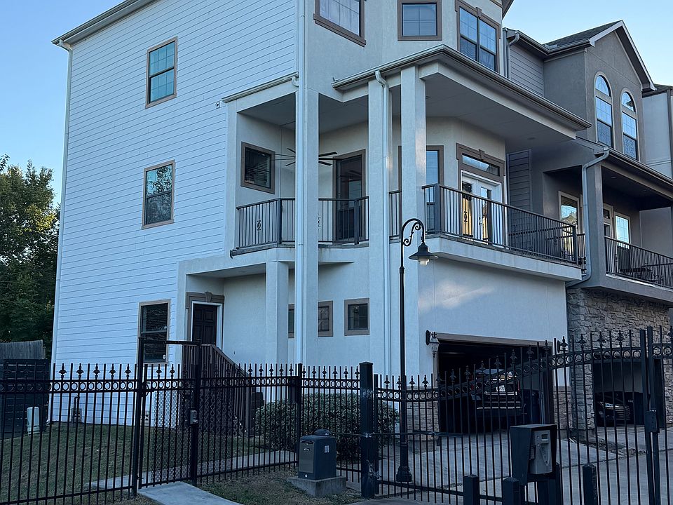 Beautiful freestanding home in Villas at Bonner/Heights. Gated community. This 3 story/3bed/3 full & 1 half bath home sits just off the Heights hike & bike trail with a view of downtown and the bike trail from the wrap-around balcony. No homes built next to this home to block the view! This home offers high ceilings, new carpeting throughout, wood floors on the main floor, freshly painted interior, stainless appliances, and brand new a/c units. Second floor open concept living provides ideal floor plan for entertaining with effortless flow from kitchen/dining/living areas. All bedrooms w/ full private baths. Primary up w/spa-like bath. Beautiful backyard with new deck, as well as a large balcony off the second floor level living space. Walk out the front gate & you are on the trail! Area centrally located w/easy access to I-10, 610, I-45, Downtown & Galleria. Beautiful/convenient!