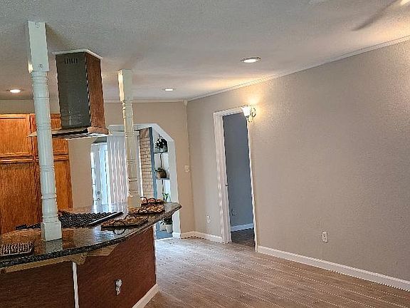 Charming and bright one story brick home w double lot. New tile floor throughout the house plus new remodeled master bath. This home has a spacious open concept layout from living room to kitchen and dining room. Kitchen has a granite countertop w breakfast bar, slide in gas 5 cooktop and refrigerator. Master bedroom has its own French door to go to the deck. Only minutes away from HW3/146/ and 45. Close to school and other amenities.