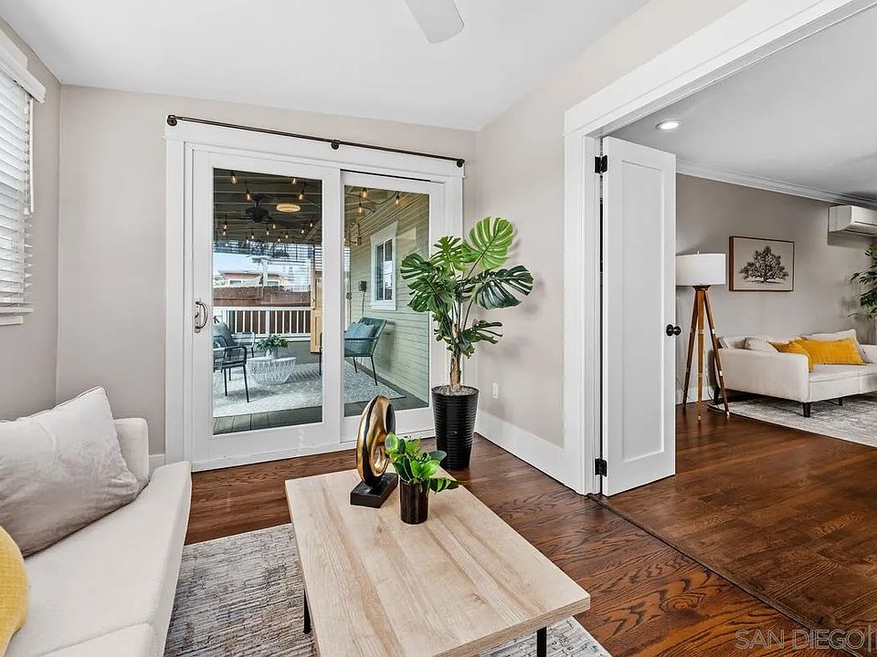 Pristine Craftsman located in vibrant North Park! This home is very special. Has many options. Separate detached remodeled room with bamboo floors and private entrance, ideal for home office. Bonus room off of living room with private french doors, can be used as guest bedroom or family room. 30 K in upgrades! Original refinished white oak floors. Built in cabinets. 2 full bathrooms. Gorgeous galley kitchen. Lots of windows giving home breeze and natural light. Inside laundry room. Long gated driveway with roll gate for privacy. Craftsman signature: covered front porch with tapered columns. Home professionally painted inside and outside. Home is privately fenced in. Tuff Shed. Storage closet. Ceiling fans in all rooms. 3 mini splits A/C. outside wash tub for gardening or washing dog. Tankless water heater. Home has Section one termite clearance completed.