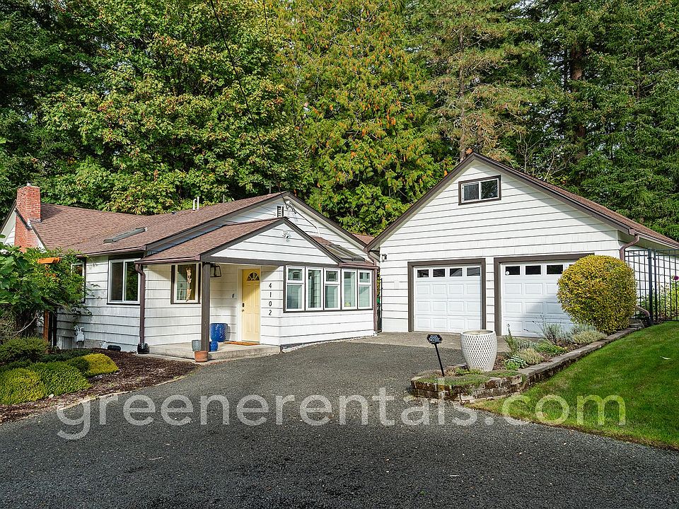 This charming home combines classic character with modern convenience. Enjoy original hardwood floors and unique details throughout. The kitchen boasts granite countertops, updated cabinetry, and plenty of storage. The spacious primary suite features vaulted ceilings, bonus room and opens to a private patio retreat. Generously sized second bedroom and two-car garage. The property spans one acre and includes fruit trees, a greenhouse, raised garden beds, a water feature, and thoughtfully planted northwest flora, providing beauty throughout the seasons. The fully fenced yard ensures privacy. Ideally located just half a mile from Olympia Golf and Country Club on the desirable west side. *Rent includes $340/month Landscaping Fee Available: Now Lease Term: 12 Months Security Deposit: $2,560 No Smoking No Pets Applications: $37/Adult