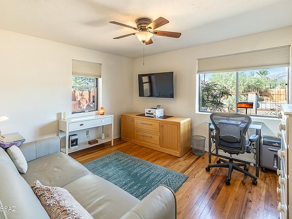 Income-producing, solar-powered gem in Tucson's Garden District! This fully fenced corner lot includes a 4-year-old solar system and a beautifully renovated guest cottage generating ~$1,200/month--offering immediate value and flexibility. The main residence features a 3-bedroom split floor plan with original hardwood flooring, a cozy bamboo-floored den, and ceiling fans throughout. The updated kitchen includes granite countertops, custom cabinets with glass-brick accents, and oversized walk-in pantry/laundry room. Private primary suite offers a spacious walk-in closet and a tiled shower w bench. Guest house includes a private entrance, custom tile, walk-in shower, and in-unit washer/dryer. Approved for a tiny home! Includes garage,shed, RV space, and views of the Catalina Mountains After the essentialssolar savings, guest house income, and a split-bedroom layoutwhat truly makes this home stand out is its flexibility.