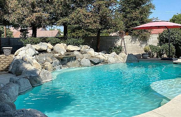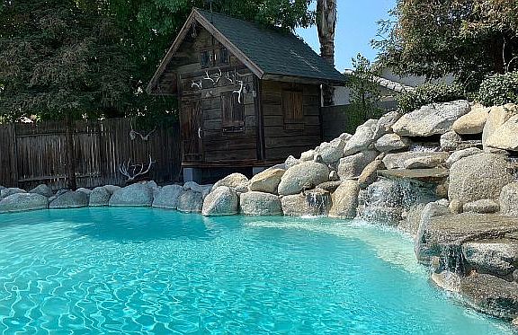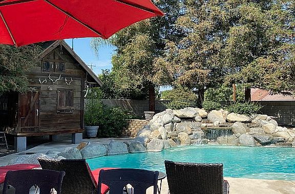 Unique Southwest area home with pool sits at the end of a cul-de-sac, on just over a third of an acre with extra-large RV parking, 3 car garage with cabinets and drive-thru access. Gorgeous double-door entry. Open split-wing floor plan with mature landscaping, stunning pool with an amazing rock waterfall. Inviting outdoor gas fire pit, backyard patio equipped with ceiling fans, and mister systems all perfect for entertaining. Also included is a one of kind hand-built rustic cabin with electricity and A/C. This home has two master suites. The main suite is spacious with a separate sitting area, updated master bathroom with granite, extra-large jacuzzi tub, and shower along with a large walk-in closet. The other is also spacious with its own bathroom and walk-in closet . Large office could be used for 5th bedroom. The gorgeous guest bathroom has been completely remodeled and updated with new fixtures, lighting, flooring, exquisite granite countertops, and shower. The chef's kitchen is completely remodeled with brushed bronze fixtures, granite counters including backsplash and appliances. The living room area includes a gas brick fireplace with insert and picture windows to the backyard with stunning pool view. Both master suites have separate entries to backyard. This home is just 1.5 hours away from LA with close freeway access.