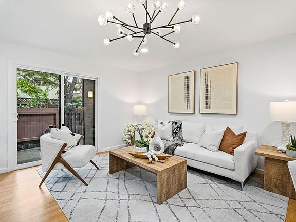 Gorgeous completely remodeled corner unit with luxurious master bedroom, large guest bedroom, and bonus office. Has the feel of a single-family home. Smart home features include Nest, Ring. Each room has access to their own private patios. Modern kitchen with stainless steel appliances and granite counter tops. The private patios and backyard are great for outdoor living and entertaining. Master bedroom has walk-in closet and remodeled bathroom. Assigned parking spot and detached garage has plenty of shelf space and storage with additional storage in a outside storeroom. Located in the wonderful Barron Square community, offering tennis court, swimming pool, hot tub, sauna and clubhouse. Walking distance to dining, shopping and Briones Park. Short commute to several major high-tech campuses. Top schools include Briones Elementary, Terman Middle School and Gunn High buyer should verify eligibility.