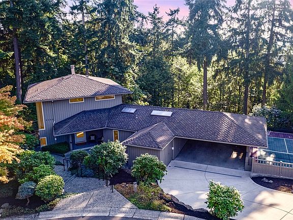 Kirkland's coveted Sandhurst neighborhood! Stunning Fred Repass custom build, glowing w/ mid-century modern charm. Enjoy the Houghton community w/proximity to Bellevue, Redmond, DT Kirkland & Seattle. Top-rated Lake Washington schools. On a cul-de-sac, this property backs to a serene greenbelt & the Cross Kirkland Corridor. Private, full-size pickleball sport court w/ basketball hoop. Large, flat backyard fully fenced. Kitchen boasts all NEW SS appliances, granite counters and backsplash. Original hardwood floors & NEW carpet throughout. New interior paint. Heated tile floor in primary bath. A/C. Vaulted ceilings. Two spacious living rooms. Workshop & greenhouse. Pride of ownership since 1988. Inspection report available. Welcome Home!