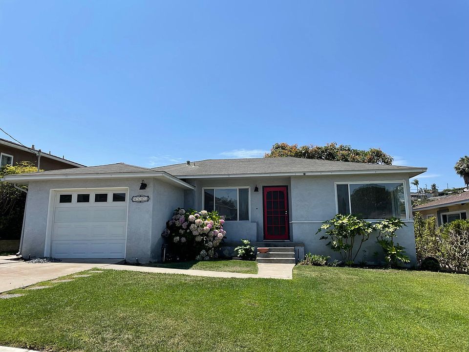 Nice and bright 2 bedroom house with lots of windows for natural light. Big open living room with hardwood floors, dining room with large picture windows. Good sized kitchen with new counters, stainless farmhouse style sink, and new stainless fridge. There is a great breakfast room that opens to the family room that overlooks the pretty backyard. The large backyard has a huge avocado tree, pretty grass, and landscaping. Nice front yard too! There is a 1 car garage with laundry hookups. Fantastic location, close to all, easy access to shopping, restaurants and freeways.