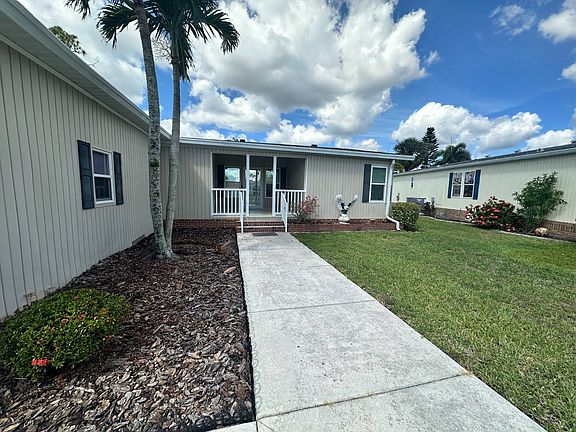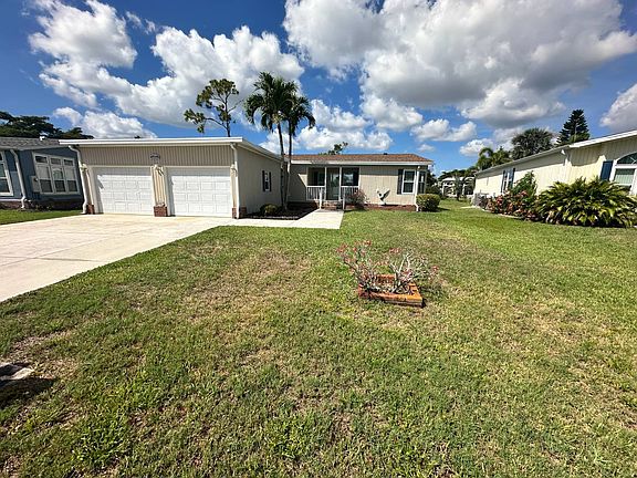 Lot Rent $1173.00 monthly    WOW!!!  The only 4 bedrooms, 3 bathroom triple wide home on the market in this community.  This home is perfect for large families, frequent guests, and entertaining, This 2004 Palm Harbor home is being sold unfurnished.  This custom home is one of the largest homes in the community.  This home is located on an oversized interior lot with a large front & back yard.  When you arrive at the home, you see the oversized driveway, 2-car garage, tasteful landscape, large front yard, long walkway, gutters, and front porch entrance. As you approach the front door, there is a covered front porch with railings.  When you enter the front door, you are welcomed by a HUGE open floorplan, beautiful luxury vinyl floors, and fireplace.  The primary living area is very large with plantation shutters, ceiling fan, stone faced electric fireplace. The dining area is a large size with Tray Ceilings, hanging chandelier, and a sliding glass door out to the yard.  The sliding doors provide a lot of natural lighting in addition to the windows above the sliding door.  These windows have plantation shutters to control the lighting.  The oversized kitchen has lots of cabinets, drawers, counterspace, tile backsplash, pantry closet, center island, high end appliances (GE - refrigerator, stove, microwave; Bosch - dishwasher), glass front cabinets, garbage disposal, and breakfast bar.  The guest bathroom has a large vanity with a single sink and tub with shower.  The 3 guest bedrooms have ceiling fans with lights, and long wall closets.  The primary bedroom is HUGE (364 Sq. Ft {14 x 26}), with an oversized walk-in closet.  There is a bedroom side and a flex area (i.e.. Office, workout space, music space, sofa with tv, etc.). The bedroom area has Tray Ceiling, Plantation Shutters on upper windows, and a ceiling fan with light.  The primary bathroom has a large double sink, with large mirror, a soaking tub with tile frame surround with pillars, walk-in tile walled shower with seat and glass doors.  The oversized laundry room has high-end Samsung front load washer and dryer. There are a lot of cabinets, counterspace, and tile floors. The oversized 2 car garage also has a golf cart garage on the side (needs service), and overhead storage racks.   There is a cement patio off the dining room area in the large yard.   UPDATES: Roof (2023), A/C (2023)  Del Tura has 5 pools and hot tubs, a clubhouse and fitness center as well as tennis courts, pickleball courts and a 27-hole golf course and a full social calendar and activity schedule. Plenty to keep you busy! This is a 55+, (very active), community. Come join the luxury lifestyle this community provides!!