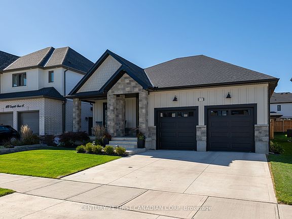 Situated in the highly sought-after Heathwoods neighbourhood in Lambeth sits this wonderful one floor bungalow that is perfect for those looking to downsize. This home has been meticulously maintained both inside and out and features many upgrades including white oak engineered hardwood throughout, ceramic tile in wet areas, double car cement driveway, large front porch, covered back patio and fully fenced yard. The primary bedroom is bright and spacious with a luxurious five piece ensuite with large walk-in closet. The spacious second bedroom and four piece bath is ideal for when guests come for a visit. The open concept main floor is ideal for entertaining with a beautiful quartz island, tons of kitchen counter space and cabinetry, a gas fireplace w/floating mantle and shiplap walls. If you are looking for all the benefits of one floor living then this home is the one you are looking for. This home is ideally situated and a short two block walk to grocery stores, pharmacy, family doctors, dentist office, spas , bakeries etc