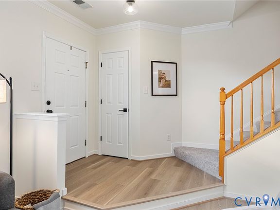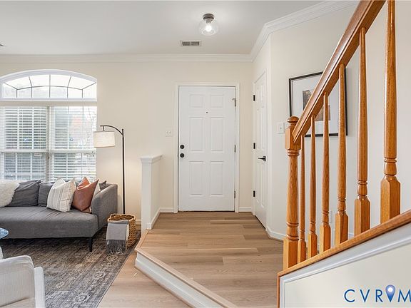 Upstairs, brand-new carpet runs throughout all three bedrooms. The spacious primary suite sits quietly at the back of the home, featuring cathedral ceilings, two skylights, a large walk-in closet, and an ensuite with double vanity, updated lighting , soaking tub, and tile-surround shower. A small sitting nook leads to two additional bedrooms and a refreshed full hall bath. The pull-down walk-up attic provides excellent storage, easy access to the furnace, and generous insulation to help with efficiency. Outdoors, low-maintenance living continues with HOA-provided exterior and lawn care—just lock, leave, and enjoy. With quick access to I-295 and I-64, 4103 Dominion Townes Cir offers modern updates, effortless upkeep, and unbeatable convenience.