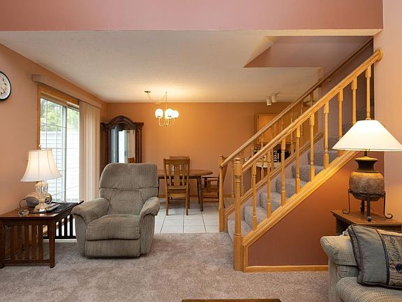 Wonderful end unit with 2 bedrooms and a spacious upper-level loft area that is perfect for office space or play area. The open floor plan features vaulted ceilings with an oversized front window which provides lots of natural light. The property features a large master bedroom with walk-in closet, brand new carpet, gas fireplace in the living room, good size dining room with kitchen peninsula and walkout to the personal patio area, main floor laundry, new Kinetico water softner, and 2 car attached garage. Relax and enjoy the views of the pond and all its wildlife as well as the additional green space that this association provides. Conveniently located just minutes from shops, dining, freeway and more. Located in 196 School district.