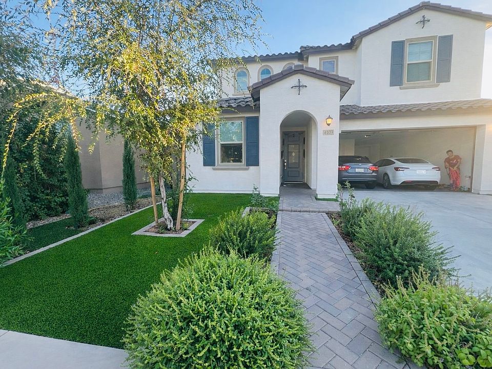 This 2023-built luxury residence offers 5 bedrooms, 4 bathrooms, 3 car tandem garage and 3,397 sq. ft. of refined living space in the highly desirable Warner Meadows community of Gilbert. Thoughtfully designed with modern elegance, the home features a gourmet kitchen with white extended cabinets, premium quartz finishes all over the house, an open-concept great room, and a dedicated den/formal dining area and a breakfast corner with accent walls in the den and hallway, perfect for both everyday living and upscale entertaining. A built-in surround sound system enhances the main living space.