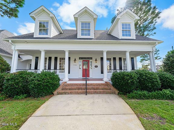 This quintessential low country style home designed by famous southern architect William Poole embodies timeless classic charm and is perfectly situated on a desirable corner site in St. James Plantation. A lush front lawn frames the concrete pathway that leads to an amazing rocking chair front porch adorned with wood plank decking. The elegant front door, accented by beveled glass sidelights and a transom window, sets the tone for the warmth and character found throughout the home. Inside, you'll discover four spacious bedrooms and three and a half bathrooms in a sprawling 3,361 heated square ft. Step inside the two-story foyer to explore both the formal and casual living spaces. As you enter to the right the formal dining room welcomes you with gleaming hardwood flooring, chair rail molding, and a tray ceiling that showcases a classic multi-light chandelier. On the opposite side of the entryway, a versatile flex space serves beautifully as a home office, den, or library, highlighted by a decorative millwork header framing the French doors that open into the great room. The real three-quarter inch hardwood flooring continues into this light filled gathering space, where a gas propane fireplace extends into the room setting the tone for a cozy setting. Wide sliding doors connect the great room to a delightful, screened porch and an open deck, perfect for entertaining and enjoying the mild Carolina weather. Back inside, venture into the spacious eat-in kitchen an inviting hub for both cooking and gathering. This well-appointed space features tile flooring, an abundance of cabinetry, solid surface countertops, a stylish tile backsplash, and a wall mounted oven paired with a separate gas stove. A built-in desk adds functionality, while the two-tiered island offers generous prep space and bar-height seating for casual dining. A pantry provides additional storage, and a vaulted ceiling enhances the open, airy feel. Just beyond the kitchen lies the private owner's suite, a true retreat with hardwood flooring, an impressive double tray ceiling, and a luxurious ensuite bathroom featuring dual vanities, jetted soaking tub, and a glass enclosed walk-in shower. The suite also includes a walk-in closet with built-in shelving for maximized organization, along with elegant atrium doors that open to the deck and a wooded backyard complete with a private seating area nestled among the trees. The second floor makes this home ideal for multi-generational living or hosting overnight guests in comfort. A catwalk overlooking the kitchen below provides access to three inviting bedrooms. Two of the bedrooms share a full bathroom with separate entrances, while the third enjoys private access to the hall bathroom and has a spacious walk-in closet. The catwalk leads to a versatile bonus area, that can serve as an overflow guest space, a media room, or a game room. From here, a convenient staircase connects to the garage entry, kitchen, and a large laundry room with tiled flooring, a deep utility sink, and cabinetry for added storage. An exterior door from the laundry room opens to a charming side porch, where a brick pathway winds its way to the beautifully maintained front yard. Don't miss the opportunity to experience the timeless charm and inviting warmth of this beautiful low country home in St. James.