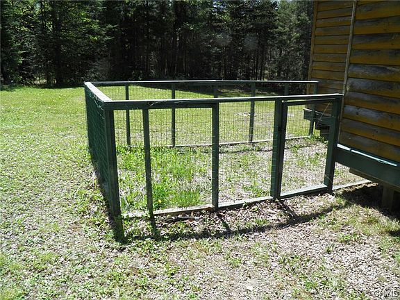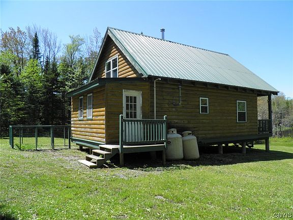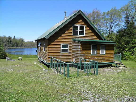 This fully furnished, ready-for-use, two-bedroom, one bath, 1 story with loft, secluded cabin is the epitome of a recreational property on the Tug Hill Plateau! It is situated on 11.2 wooded, surveyed acres, with ~350’ of frontage on an active 12-acre beaver pond, just 10.5 miles from Lowville, the nearest village. The cabin sits on a rise above the pond and is surrounded by woods. Built in 2007. Propane appliances include; hot water heater, lights, cooktop/oven, and refrigerator. Solar powered water pump and outlet. Wood framing with stained log style siding and a painted steel roof. Built on concrete piers with open crawl space. Two water sources; a 16’ deep dug well with solar powered pump and an 18’ deep dug well with hand pump. A 1000-gallon concrete septic tank and leach field. An open deck facing the pond offers great views of all the wildlife activity in and around the pond. Includes a 20’ metal storage container for maintenance and recreational equipment and a pet pen for dogs. Accessed via a common right of way and easement from Maple Ridge Road. A gate is located on access road. Adjacent to Lesser Wilderness State Forest and close to ATV and Snowmobile trails.