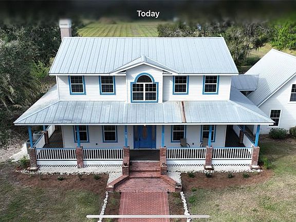 Discover the perfect blend of charm and space in this beautiful two-story country home set on over 5 acres. A full wraparound porch welcomes you with classic farmhouse appeal, while a breezeway connects to a detached garage that includes an upstairs workshop or office ideal for hobbies or working from home. Inside, you'll find a generous family room featuring a cozy wood-burning fireplace. The kitchen offers warm wood cabinetry and opens to a formal dining room, perfect for gatherings. A versatile fourth bedroom or den is conveniently located on the main floor. The spacious primary suite is privately tucked away upstairs. Whether you're seeking peaceful country living, room to roam, or space for projects and storage, this property has it all. Pets are allowed with some restrictions. Book your showing today!