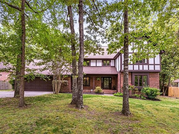 Beautiful Tudor-style home shaded by southern red oaks located in esteemed Oak Hollow Estates! This property offers a traditional floor plan with a formal living area displaying grass-cloth walls, built-in shelving and floor to ceiling sit-in windows. Grow cozy in the den with the exposed brick wood-burning fireplace. Dining room is situated next to the eat-in kitchen (renovated 2021) which includes a redesigned layout with granite counters, farmhouse sink and timeless two tone shaker cabinetry that compliments the ceramic tile backsplash design. Upstairs you will find 4 large bedrooms, 2 baths and a comfortable home office. The oversized primary, ideal for small sitting area next to the window, has duel walk-in closets and large ensuite. Enjoy the backyard as you entertain where you'll find the recently installed EZ screen enclosed porch, concrete pad for a fire-pit gathering, basketball practice or above ground gardening. Location convenient to PTI Airport, HPU, shopping and dining.