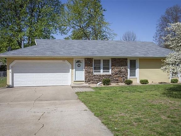 For Charm and Convenience, stop by 4103 S Ridgecrest! This home features a beautiful kitchen with custom cabinets, a pantry, an extended bar, and a window looking out to the fenced back yard. Everyone will love hanging out in the family room that boasts a wood-burning fireplace and cathedral ceilings. Newly painted with neutral colors, this home also offers new carpet in all three bedrooms, laminate flooring in living room and hallway, and ceramic tile in the kitchen as well as in the updated bathrooms. Polished nickel light fixtures and stainless/black appliances add a nice touch. Steel siding, a covered patio, and an oversized driveway complete the package for this move in ready home!