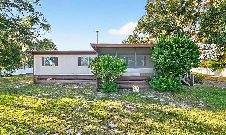 This charming 3-bedroom, 2-bath manufactured home, built in 1981, sits on over a third of an acre in Woodland Manor—one of the largest lots in the community. Offering 1,344 sq ft of living space plus an additional 355 sq ft finished Florida sunroom, this home provides the perfect flex space for a home office, den, or a cozy spot for pets. Inside, you'll find a true split floor plan with a dining room, breakfast nook, and a spacious living room, along with excellent closet storage throughout. The long driveway leads to a 576 sq ft metal pre-fab workshop/garage, complete with electric and A/C units, plus an additional storage shed. Enjoy a fully fenced yard with a front gate and a relaxing screened-in front patio—ideal for morning coffee or evening unwinding. Notable upgrades include a newer heat pump (2020), hot water heater, and propane stove. Located at 4103 Woodland Circle, this property offers peaceful country-style living while being just a short drive to downtown DeLand, local shopping, restaurants, Orlando attractions, and nearby beaches. This home is FHA and VA financeable—be sure to add it to your must-see list!