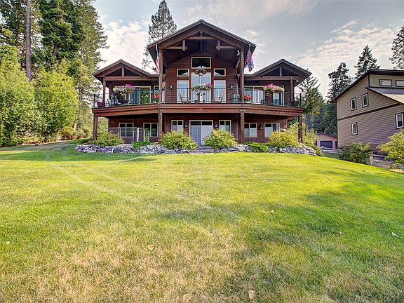 TURN KEY!! Flathead Lake living at its best, with 103' of pristine pebbled beach with beautiful views of Flathead Lake and Melita Island. One half gorgeous acre that comes with large dock, boat slip and boat lift. This beautifully appointed home, 3,172 square feet of living area, has it all. Attached is an oversized 3 car garage. The main level comes complete with a gourmet kitchen, ceramic tile flooring, marble counter tops, center island, knotty alder cabinets and all stainless-steel appliances. The kitchen opens into a lovely dining area, that leads to a large living room with fireplace. All with black walnut flooring and a wall of windows that opens to a beautiful wraparound deck that is partially covered for shade. The owner's suite is on this main level. Lower level is complete with 2-bedroom ensuites, large family room and additional storage. Enjoy the lower-level walkout patio. Exterior Features include a large covered front and side porch, paved driveway, with lots of extra parking. NEW PHOTOS COMING SOON.