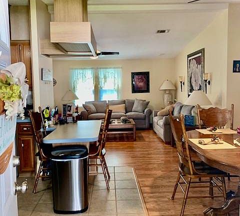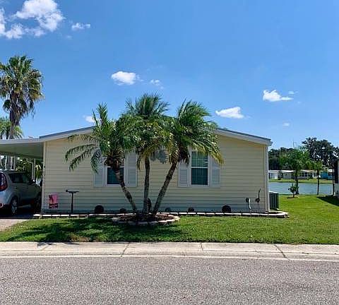 Welcome to Beautiful Lakefront living in a Wonderful 55+ community in Sunny Florida! You will have around 1200sqft of updated living on a beautiful, palm tree, lakefront home! Upon entry off the long, covered driveway is your open plan Kitchen, Dining and Living rooms. The kitchen has beautiful wood cabinets, of counter space, window, ceiling fan, tile flooring, and a nice little bar for extra seating and storage. This is open to the large dining room with built-in hutch, and living room, allowing for lots of space for family and friends. The hallway offers a built-in desk on the way to the nice size Guest Bedroom and updated Full Guest Bath. The whole front of the house is the Primary Bedroom offering room for a King size suite of furniture, large closet, and an updated ensuite with built in vanity and private walk-in shower and toilet room. The real living in the home takes place Lakefront with a beautiful windowed Den and a large, attached Lanai that opens to the Lake. You are also very close to the Clubhouse, pools and other amenities. This home comes nicely updated with new flooring, paint and lighting throughout. This home will be unfurnished. Mechanically, it has a Metal Roof, updated CPVC plumbing, vinyl windows, and new A/C ducting. The current lot rent is $767. FOREST LAKE ESTATES IS A 55+ LAND LEASE COMMUNITY. THE MONTHLY LOT RENT FOR THIS HOME includes lawn care, pass through tax, trash, 24 hour gated access and use of all amenities. FOREST LAKE ESTATES FEATURES TWO HEATED POOLS, HEATED SPA, SPACIOUS SUN DECK, TENNIS COURTS, PICKLE BALL COURTS, SHUFFLEBOARD COURTS, A BASKETBALL COURT, HORSESHOE PITS, 18 HOLES OF PUTT-PUTT GOLF, 2 DOG PARKS, STOCKED FISHING LAKE, & DOCKS. THE CLUBHOUSE HAS A DANCE FLOOR, YOGA, & EVENTS. Showings are available via Face-time (live video of property) -OR- scheduled showing by appointment.