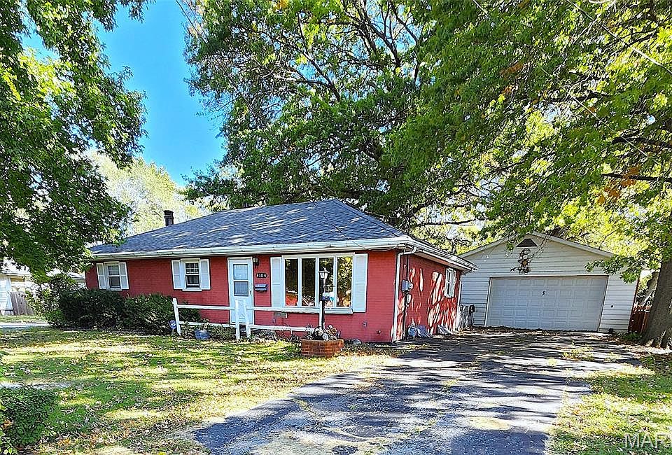 3 Bedroom - 2 Bathroom brick ranch with fenced yard, partially finished basement & impressive detached 2.5 car garage. Just under 1700 total square feet of finished living space on this home in need of some TLC & updates. Bright living room with picture window. Large eat in kitchen w/ appliances included. Primary bedroom suite with private half bathroom. 2 more bedrooms and a full hallway bathroom complete the main floor. Lower level has a huge room divided into to a family room with stonework fireplace and a recreation / exercise room with a bar. In addition, there's an unfinished room that would make a great office or bonus room. A big unfinished laundry / storage room completes the lower level. The backyard is vast and completely fenced. It features a barn style storage shed. Vinyl replacement windows. Roof (2014) Central Air (2014). Just minutes from IL Route 3, Interstate 270 and the McKinley Bridge. There are currently no exemptions on the property taxes for this estate, and they would be lower for an owner occupant.