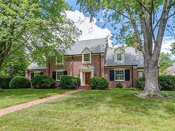 Stunning sun-filled Family Room addition with stone fireplace + wet bar complete this classic brick & slate home on a desirable level & deep lot in the heart of Windsor Farms. Lovely front-to-back Living Room with gas fireplace + custom cabinetry, private Office/Den with bay window, formal Dining Room, jazzy Powder Room renovated Kitchen + Gathering/Morning Room all add to the allure of the main level. 3 Bedrooms all with en-suite baths + Laundry Room complete the second level. The waterproofed basement level offers attractive Rec Room with corner fireplace, Half Bath + Exercise/Music Studio. Walk-up attic. Attached one-car garage. Andersen windows throughout installed in 2016.