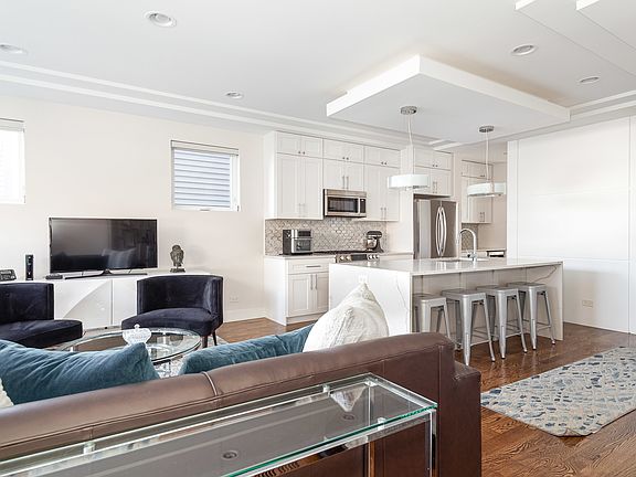 Contemporary recent construction SFH by MK Construction & Builders. Bright and spacious combined living/dining with gas fireplace. Chef's kitchen with stainless Bosch appliances, shaker cabinetry, center island with breakfast bar seating, quartz countertops, butler pantry, and separate walk-in pantry. Adjoining family room with oversized windows and exit to rear yard. Sunny primary suite features custom ceiling detail, two large closets and spa like bath with frameless glass shower, designer tile, dual vanities and a skylight. Two additional bedrooms, full guest bath with tub, and laundry with washer/dryer complete the upper level. Finished lower level with nice ceiling heights and great natural light, large recreation room with wet bar and wine fridge, 4th bedroom, full bath and laundry with second washer/dryer. Custom closets and windows coverings. Fenced in front and rear yard. Private backyard with nice green space, deck with built-in seating, brick paver pathway, and two car garage with heater. Sprinkler system. Quiet block in great Irving Park neighborhood with easy access to the blue line, expressway and Independence park. Schedule a showing today!