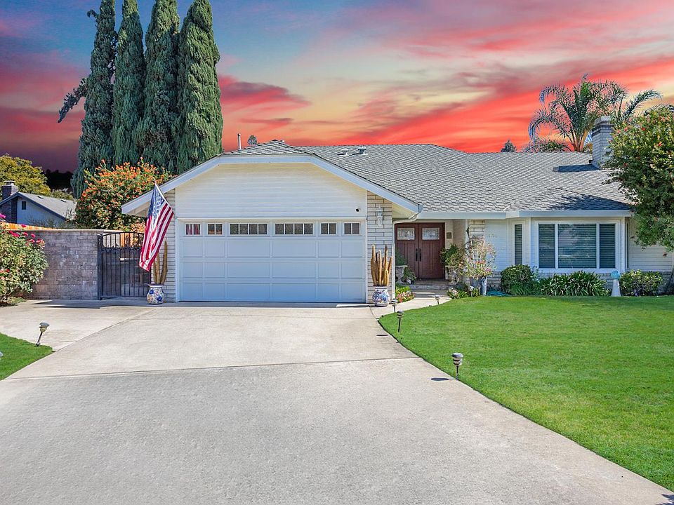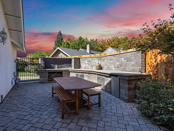 This exquisite North Modesto home blends modern design with timeless sophistication. Offering 3 bedrooms, 2 bathrooms, and 1,830 sq. ft., it has been fully remodeled with quartz countertops in the kitchen and both bathrooms, stylish new floors, and all-new windows, sliders, and front door. The entry foyer sets the tone with slate flooring, leading into spacious living areas including a family room with cathedral ceilings. Skylights and sky tubes brighten the interiors, creating a warm, inviting atmosphere. The living room showcases a custom cherry wood mantel over the fireplace, adding warmth and elegance. The primary suite features a massive walk-in closet and a flexible room ideal for an office, gym, or retreat. Outdoors, enjoy a large covered patio, Argentina-inspired barbecue that glows at night, custom side gate with grape accents, and a hot tub for relaxation. The backyard shed even includes its own toilet, providing extra convenience. Located on a cul-de-sac lot with a newer roof, this residence is a beautiful blend of elegance, comfort, and modern style in one of Modesto's most sought-after areas.