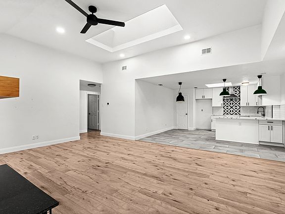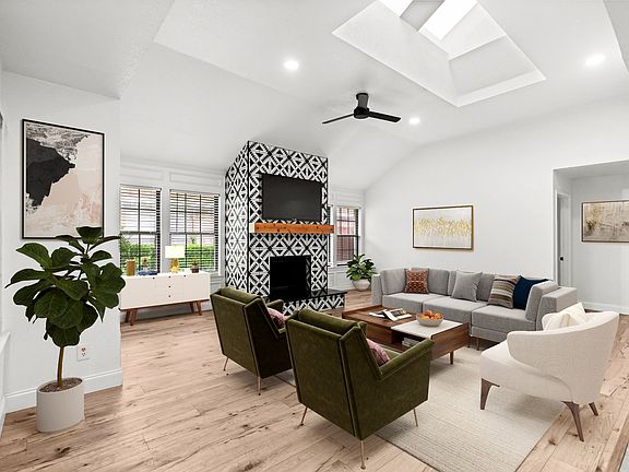 Striking fireplaceUpdated bathroomsUpdated light fixturesPrivate back patioComfortable carpet-free livingNew stainless steel appliancesSoaring ceilings