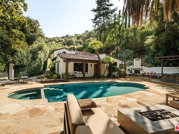Offered for only the second time in 50 years, 4105 Crisp Canyon Road is a rare find. One of the few authentic Spanish canyon retreats in Sherman Oaks. This exceptional home, built in 1932 by acclaimed silent film star Donald Crisp, that embodies timeless charm and historic grandeur. This 4-bedroom, 4-bathroom, 3,257 square foot home embodies the beauty and elegance of the authentic Spanish Colonial style. This residence offers a secluded sanctuary, presenting a blend of nature and tranquility just south of Ventura Boulevard. Inside, no detail has been overlooked. As you enter you are immediately captivated by the stunning architectural features that define this unique residence. A reclaimed old growth Douglas Fir beam from Howard Hughes' former Oakland airport adds historical depth to the updated family room. The French Oak floors exude a sense of timeless sophistication. The living areas are anchored by a custom, masonry, double sided fire place, providing a cozy yet grand space for relaxation and entertainment. These areas seamlessly flow into the stunning dinning room and immaculately redesigned kitchen. The kitchen features Calcutta Gold Marble and Soapstone counters, a Sub Zero refrigerator, Wolf 6 burner stove with griddle & M series double oven, and bespoke cabinetry with antique European pocket door and solid brass hardware. Downstairs you will find a generously sized ensuite bedroom as well as a bonus room, perfect to use as an office or playroom. Head upstairs to find three bedrooms, including the primary suite that features a large spa-like bathroom and walk in closet. Each room is generously sized, designed with both comfort and style in mind. The outdoor living spaces are equally impressive, on a sprawling 16,028 square foot lot, designed for both relaxation and entertainment. Handmade wrought iron light fixtures have been installed throughout the home and custom Spanish tiles grace the front landing and outdoor grill area, underscoring the home's timeless elegance. The yard features California-inspired, drought-tolerant landscaping, sprawling rose and succulent gardens, and elegant stone and decomposed granite hardscaping. Enjoy the outdoor kitchen, large dining area with custom fireplace and built-in bench, and a fire pit sitting area beneath the lush landscaping. The resurfaced saltwater pool, hot tub with new heater, and large dedicated artist's studio further enhance this private retreat.The property also boasts a sport court, wine cellar, enclosed plant beds, and access to the scenic Deervale Trail, one of the city's best-kept hiking secrets, offering picturesque views of Sherman Oaks and Studio City. 4105 Crisp Canyon Road is more than just a residence - it's a piece of Hollywood history, blending elegance, privacy, and a connection to Los Angeles' golden era. Don't miss the opportunity to own this extraordinary property and experience a unique blend of historic charm and modern luxury.