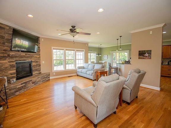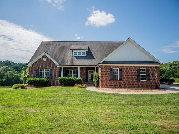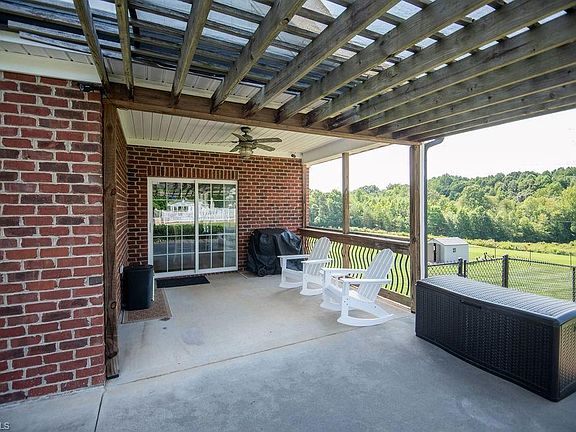 This is not your average brick rancher!! This custom built Yadkin County home is move in ready, and packed with features! The main level has 9 foot ceilings and beautiful oak floors in all rooms. The open floorplan and ample windows give the main living area a bright and airy feel! The spacious kitchen has warm toned wood cabinets, stainless appliances and tons of workspace! The large primary bedroom has an ensuite bath with tiled shower and huge walk in closet. Living space is expanded in the basement, with a large recreation room and a 3rd full bath! There's no shortage of parking or storage, with a main level 2 car garage and a 3rd garage door in the unfinished portion of the basement. Outside you'll find covered porches, a neat pergola, and a large fenced area for your furry friends! Convenient location is close to local attractions, shopping, and I-77 for commuters. 2 acres, and more land available!!