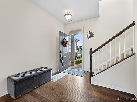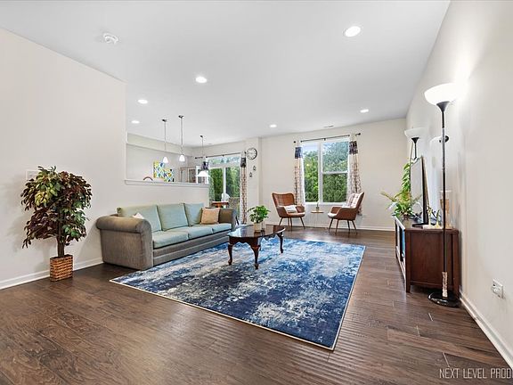 Discover this charming east facing 2-bedroom townhome nestled in the sought-after Gramercy Square community! Step into a welcoming foyer that flows seamlessly into a spacious living room, bathed in natural light and accented with elegant wood laminate flooring, creating a warm and inviting atmosphere. The open-concept layout connects the living area to a dining space and a well-appointed kitchen, featuring ample cabinetry, generous counter space, granite countertops with a stylish tile backsplash, stainless steel appliances, and a convenient pantry closet. Sliding glass doors lead to a private patio and backyard, perfect for relaxation. A half bath on the main level adds practicality. Retreat upstairs and enjoy a generous master suite with a spacious walk-in closet, dual vanity, and a modern shower. The second bedroom complemented by a second full bath, a cozy loft area, and the added convenience of an upstairs laundry complete the second story. A private two-car garage provides ample space for vehicles or additional storage. Located in the highly acclaimed Indian Prairie School District 204. Its prime location near Route 59 and 75th Street offers easy access to shopping, dining, and major commuter routes, with a nearby school bus pickup for added convenience.