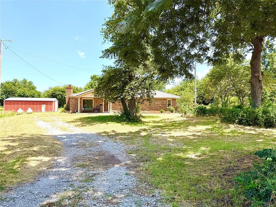 Nestled on a serene two-acre wooded plot, this charming country property offers the perfect blend of peaceful living and practical features. With solar powered gated entry, and full 360 degree fence line, you truly are separated from the busy outside world on this tranquil slice of heaven. A spacious 1,200 square foot shop building sits on a double poured concrete slab and is fully equipped with electrical service—ideal for hobbies, storage, or a home-based business. The home includes a two-car carport and a storm shelter, providing both convenience and safety. A recently replaced well adds extra peace of mind, along with the durable metal roof designed to offer long-lasting protection. Inside, you'll find an expansive open floor plan with a generous living and dining area, a large kitchen with abundant cabinetry and storage, and a spacious laundry room. The primary suite offers its own private oasis, including a step in jetted tub for relaxation and enjoyment. The property includes a transferable termite treatment and service plan, ensuring continued protection against wood-destroying pests for years to come. Adding to the appeal, a brand new Dollar General nearby offers convenience without sacrificing the tranquility of country life. The property also backs up to a cattle land, allowing for expansive enjoyment of the surrounding wooded countryside—making this a truly rare opportunity to enjoy the best of both comfort and nature. If you have been holding out for an affordable country home, this is the one! Schedule your viewing today!