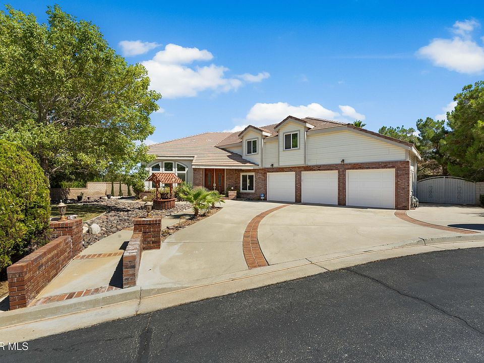 Nestled in a private cul-de-sac within one of West Palmdale's most desirable neighborhoods, this stunning residence offers the perfect balance of elegance, comfort, and entertainment. The home's exterior is highlighted by beautiful custom brickwork, giving it exceptional curb appeal.