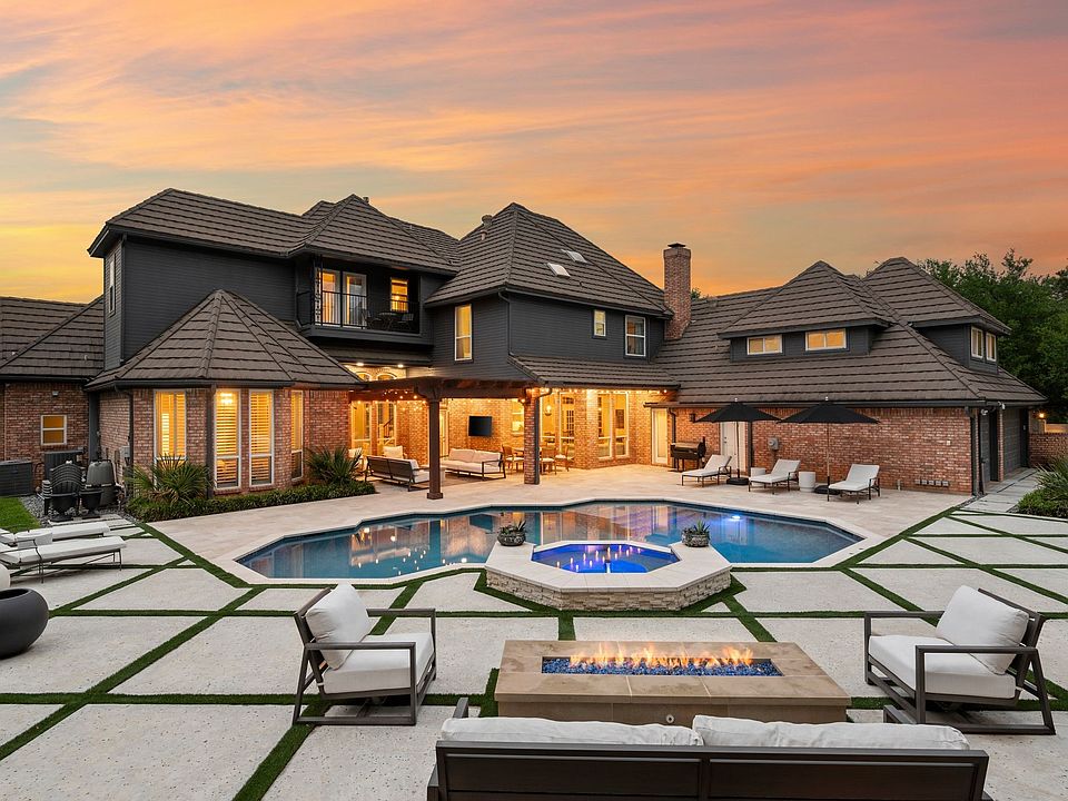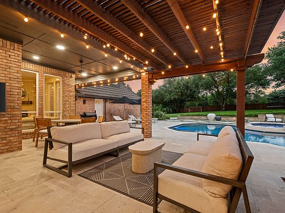 No expense was spared when it comes to the interior & exterior renovations completed for this stunning Colleyville home nestled on a rare 0.8-acre corner lot in the prestigious gated community of The Hills of Central Park. Perfectly located within the highly sought-after GCISD school district and just blocks from premier shopping, dining and DFW Airport, this home offers both convenience and elegance. Step inside and be welcomed by beautiful flooring, custom lighting, plantation shutters, crown molding & fireplace! The private office with custom built-ins offers an ideal environment for working from home or creating your own library retreat. Multiple living areas provide comfort and versatility, while the fully remodeled chef’s kitchen shines with high end quartz countertops, dual islands, double oven, gas cooktop, custom cabinets, gorgeous backsplash and tons of natural light! The thoughtful layout includes the primary suite and a secondary bedroom with full bath on the main level! Do not miss the primary bathroom, which has been renovated with updated tile, designer lighting, leathered quartz countertops, waterfall shower with frameless glass & freestanding tub! Upstairs features three additional bedrooms, a spacious game room, and a flex space that could be turned into a wonderful media room, second office or a craft space! The outdoor space is an entertainers dream & feels like your own private resort-style oasis! As you walk into the backyard you will notice the updated pool decking, extensive stonework, travertine hardscape, smart system custom lighting and pool controls, covered patio, pergola, re-designed pool + spa, custom firepit and incredible amount of space roam and play. The board on board cedar fence creating ample privacy completes the package! If you are looking for the MOVE-IN READY Colleyville experience, this home truly has it all!