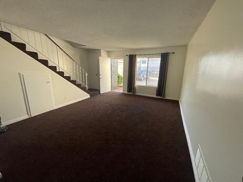 Charming duplex townhouse in El Monte 2 bedrooms, 1.5 bathroom , Spacious living room seamlessly flows into the dining and kitchen area, the sliding door open to a cozy backyard patio perfect for a BBQ and family gatherings. All bedrooms upstairs offering privacy along with a full bathroom. Freshly updated with new carpet and paint throughout the house. detached laundry room for convenience, 1 car garage with extended driveway providing ample parking. Move -in ready!.