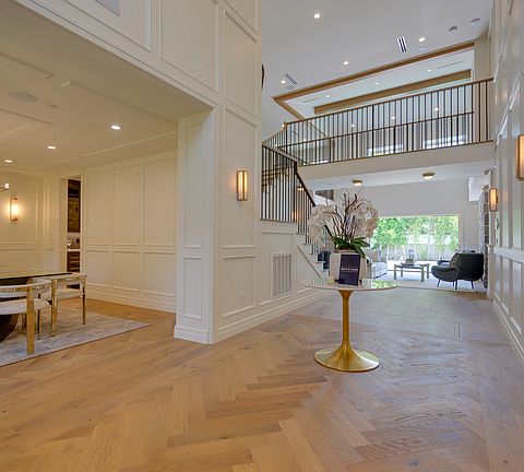 Welcome to a reimagined Colonial Mansion, set perfectly on a 15k sqft corner-gated lot. This exquisite stone, East Coast manor has five bedrooms, five a half baths in the main home and two bedrooms, two bathrooms in the guest house. The main home has over 6400 sqft with two story foyer, large living room with piatra marble fireplace, dining room that can hold 20 people, butlers, in home theater with 4k, family room and an enormous cooks kitchen with Sub-Zero/Wolf, Calcutta Gold marble counters, inset custom cabinetry, Waterstone fixtures, built in coffee and built in soda stream faucet. Upstairs you'll find a game room/loft, three ensuite bedrooms, laundry, and an incredible master suite complete with calcutta marble book matched steam shower, dual vanities, effervescent warming tub, Toto bidet. There are two closets, builts surround a linear fireplace and tree top views. The rear yard has a massive salt water pool/spa, bluestone decking, outdoor patio complete with smooth stucco fireplace, SubZero/Wolf BBQ & honed black granite. Large grassy yard with separate firepit & entry to guest house. The guest house welcomes you with a dramatic 2 story black paneled wall, french oak staircase, Rift oak modern cabinets, Thermador appliances, caesarstone counters & handmade white tile backsplash. There's private laundry, and ensuite guest baths. Exquisite!