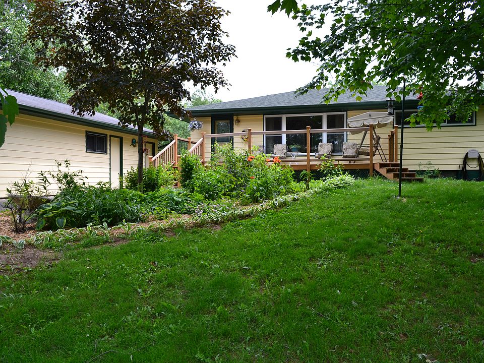 Single Family Home for sale by owner in Duluth, MN 55811. Country living in the city of Duluth! Newly updated 3+ bedroom home, 1 3/4 bathrooms. Located on more than 2 1/2 acres. Two car detached garage is 24' X 30' plus attached shed. Additional storage in shed located in the back yard - it is 16' X 16' with additional lean-to storage. New windows throughout home, new garage doors, shed in back has new roof and door. City water, private septic. Large perennial gardens, fruit trees: apple, crabapple, plum, cherry. Blueberries, and large raspberry garden, grape vines. New large deck on front w/glass panels. Updated kitchen and appliances. Both upstairs and downstairs bathrooms have been updated. Finished walk out basement. Heat is gas/propane forced air, supplemental wood stove in basement. Central air conditioning! There's LOTS of storage both inside the house and in outbuildings.