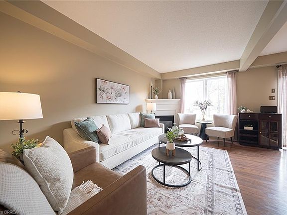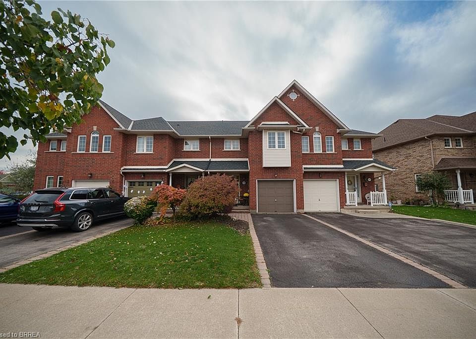 Welcome to 4106 Kryzan Drive in Burlington's Tansley Woods neighbourhood. This spotless two-storey freehold townhouse offers 1,470 sq. ft. of beautifully maintained living space with 3 bedrooms, 2.5 bathrooms plus full finished basement and an attached single-car garage. The handsome brick exterior and tidy curb appeal create a polished look. The home opens to a bright two-storey foyer with tiled floors and a large window that fills the space with natural light. A curved staircase to the second floor serves as a classic focal point. Tiled flooring continues into the kitchen, while the open-concept living and dining areas feature hardwood floors making the main level completely carpet-free. The kitchen offers stainless steel appliances, oak cabinetry, ceramic backsplash, ceiling fan, and a breakfast bar with seating. The living room includes a natural gas fireplace and large windows, while the dining area features patio doors to a rear deck with a pergola, extending the living space outdoors. The main floor is complete with a 2-piece powder room. Upstairs are three bedrooms each with a ceiling fan. The 4-piece main bathroom includes a quartz countertop and glass-enclosed tub/shower combination. The primary bedroom features crown moulding, a large walk-in closet, and a private 4-piece ensuite with quartz countertop and glass-enclosed tub/shower combination. The finished basement provides a large recreation room with carpet flooring, recessed lighting, and built-in storage, plus a laundry room for convenience. The landscaped, fully fenced backyard includes a raised wooden deck with pergola, greenery, and a Japanese maple, offering a low-maintenance outdoor space. Located in Burlington's sought-after Tansley Woods neighbourhood, the home is close walking distance to parks, scenic trails, and the Tansley Woods Community Centre. Easy access to all major amenities and highway access.