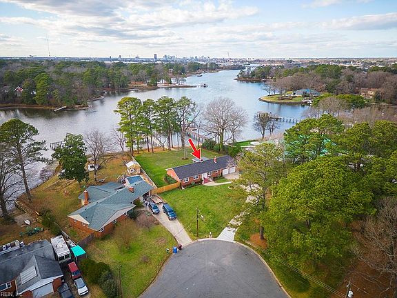 Boat Owners! Rare one level brick ranch on deep water! All major systems updated. Repurposed floor design provides open space living and remarkable views of the Indian River which feeds directly into the Elizabeth River. Mean low tide approx. 3 ft. Huge private back yard provides plenty of space for pool addition. Large 2 car garage/detached storage shed with power plus electric dog fence. Let's talk inside. Updated kitchen with GE Profile appliances and beverage refrigerator. Quartz countertops with generous sized center island. Luxury Vinyl Flooring throughout the main areas of living including bedrooms. Spacious primary bedroom with luxury bath that feature dual shower heads with a third rain shower. Special mood/make up lightning to bath mirror. The Pier-maximum sf and over engineering at every point was utilized. Hurricane rated roof structure, electrical panel upgrades and plumbing service installed. Ready for your lift. More details available. Qualified buyer and appt required.