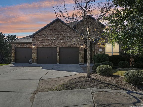 TPC Beauty! Seller is open to assumption of his VA 3.375 interest rate loan! This impeccable single-story home in Cibolo Canyons has it all. Meticulously maintained 4-bedroom 3 bath WITH Study has a great open floorplan with tons of light. Huge eat in kitchen is a chef's delight with custom cabinetry and incredible premium granite counters, pendant lighting and gas cooktop. Beautiful premium hardwood flooring throughout kitchen and living/dining/entry room. High ceilings with majestic fireplace accentuate the country feel and is great for entertaining friends. Oversized master boasts stunning bay windows with extra-large master bath with separate shower and luxurious soaking tub along with dual vanities. Three additional spacious bedrooms plus a study for the work at home folks. So many extra's with this home like a 3-car garage, EV Charger, dual water heaters, water softener, corner lot, sprinkler system, mature landscaping and an expanded oversized deck off the back leading to a private back yard and greenbelt with metal fencing. This vibrant JW Marriot TPC community is true resort living featuring two amenity centers, including pool and waterpark, lazy river, miles of biking & jogging trails, community centers and a soccer field. This home has it all!