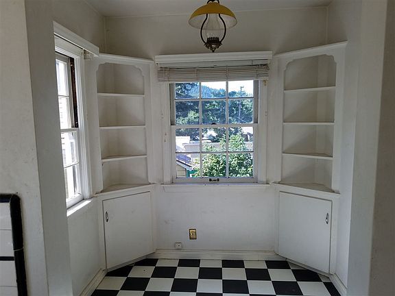 This truly is an adorable "era home". Bright red door welcomes you into an airy open area with rustic living room on one side and dining room on the other. Living room has fireplace with woodstove insert for cozy winters. 3 bedroom 1.5 bath, art deco type kitchen and baths, large basement which includes single car garage (extra parking area on the side) and is totally useable. Lovely landscaping. Located at the end of street, so no thru traffic. Loads of potential!!