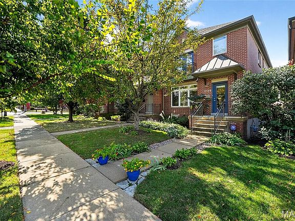 Showings begin 10/09 at 10:00 am. Flooded with natural light, this three-bedroom, two-and-a-half-bath home showcases tall ceilings, rich detailing, and premium finishes throughout. The main level stuns upon entry with its open concept floor plan with recessed lighting, gleaming hardwood flooring, and tall ceilings. The living room features a gas fireplace, a wall of windows, and leads to the dining room. Beyond is a thoughtfully designed chef’s kitchen (renovated 2022) anchored by a generous island, seamless custom cabinetry, dazzling countertops and backsplash, a coffee and bar station with lighted glass cabinets, stainless appliances, and walk-in pantry. The kitchen opens to a large “Trex” deck with handsome weather-resistant black aluminum railing, retractable awning, and overlooks a private, beautifully landscaped yard. The elegant, renovated (2022) powder room completes the main level. Upstairs you will find the primary suite which offers a serene retreat with a spacious walk-in closet, door to a Juliet balcony overlooking the streetscape, and an ensuite bath with double vanity sink, incredible oversized shower and closet offering additional storage space. Two additional bedrooms, a full bath, and a full-sized laundry room complete the second level. The amazing, finished living space awaits in the lower level. Spread out in the family room, with an abundance of recessed lighting, tall ceilings, and an adjacent room featuring built-ins and luxury vinyl flooring, the perfect space for an office or workout area. Roof 1 yr old, Experience all this magnificent townhouse has to offer! (See Special Features for detailed upgrade and renovation information.).1 mi to Forest Park ~ 1 mi to St. Louis Chess Club ~ 4.5 mi to Busch Stadium/Enterprise Center ~ 5 mi to Clayton ~ 12 mi to Lambert Int’l Airport