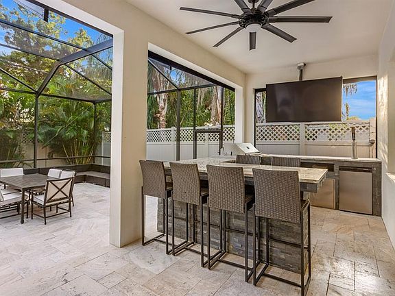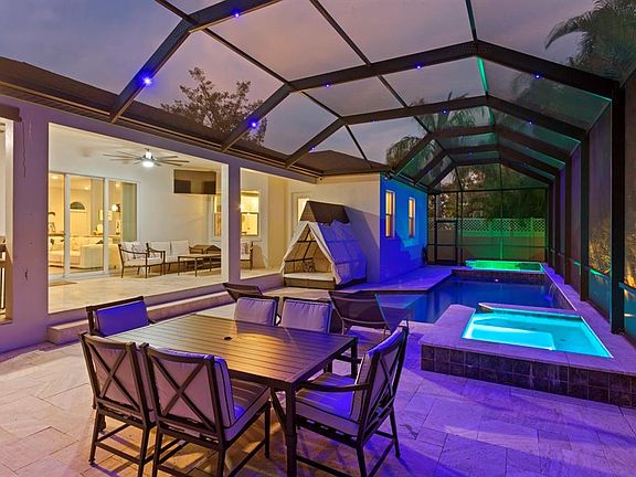 Bay-window breakfast nookTurf yardSunken fire pit loungeSurround sound speakersScreened-in pool with spaUltimate outdoor oasisStone countertops