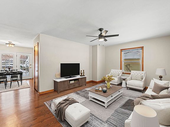 Handsome, move-in ready, easy living ranch style home! The spacious living room is the first area to spot the newly refinished gorgeous hardwood floors. The living room flows into the dining area illuminated by a new chandelier and delightful French doors. The show stopper is the new kitchen. Upgraded and plentiful cabinetry has soft close drawers/doors and dovetail joint construction. Stunning quartz counters, stainless steel appliances including brand new gas range/microwave, tile flooring. Three bedrooms all with hardwood floors. The updated bath has a newer vanity and lighting, tile floors and linen closet. Lower level offers a rec-room, separate bar area/flex space and ample storage. The fenced rear yard oasis has been lovingly deemed, "Camp Dakota." Feel like you've been transported to the Northwoods with multiple decks, custom wood carvings, fire pit table and mature landscaping. You will appreciate the two car garage plus an 8 x 8 shed with custom shelving for extra storage! Virtually staged.