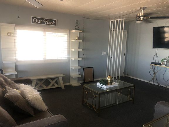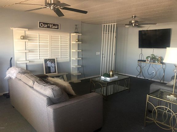 Two bedroom, two bath, open family room with large covered patio, dining room, kitchen with inside laundry. Large carport for three vehicles and parking in driveway. Three storage sheds in back yard convey with title. New AC installed in 2019. Property is being sold AS IS. Seller is not making repairs or offering concessions. CASH SALE 1974 home - no FHA , VA or Conventional financing available.