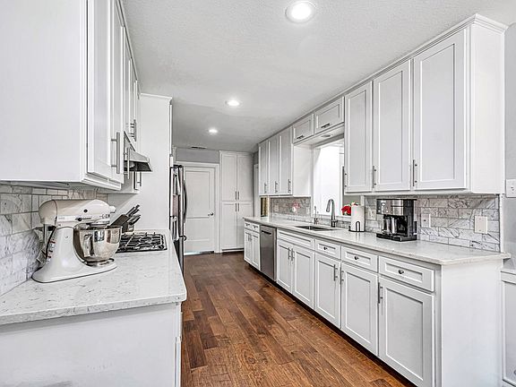 Check out this gem in prime location! Stylish engineered hardwood floors & a chic neutral palette, you will instantly feel like you are home. The living area is a show-stopper with soaring vaulted ceilings, built-in shelves, skylights, & fireplace. Kitchen is chef's paradise-quartz countertops, marble backsplash, white cabinets, stainless steel appliances, gas cooktop, & updated double oven. The spacious master suite boasts freshly revamped bathroom with luxurious touches including 3 closets. Too many updates to list but gotta mention the windows. Don't miss your chance to own this beauty!