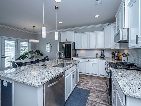 This beautiful, turn key ready home features tons of upgrades including: New Stainless Steel appliances that convey(refrigerator, microwave, dishwasher and GAS range), new tile throughout, new doors (including barn door in owners suite bath), new light fixtures, faucets and hardware, Backsplash, lighting, 42'' Tahoe Linen Staggered Kitchen cabinets with Crown Moulding and Tahoe Painted Stone colored bathroom cabinets. Hardwood stairs from 1st to 2nd floor, LVP flooring throughout the Main Living Areas and Foyer as well as Bedroom #2, Carpeting in Bedrooms and 3rd floor as well stairs from 2nd to 3rd floor, tile in all baths and laundry. Brushed Nickel Brantford Pull-Down kitchen faucet, and Pendant Lighting in kitchen. This home also has Level 2 Giallo Fiesta Granite Kitchen countertops with large Single Bowl Sink, and Porch off Dining, Moulding throughout the main living areas, faux 2'' blinds throughout home and pre-piped in garage for tub, shower and sink. All information is deemed correct; however, buyer is to confirm anything of relevance. A $1,600 Lender Credit is available and will be applied towards the buyer's closing costs and pre-paids if the buyer chooses to use the seller's preferred lender. This credit is in addition to any negotiated seller concessions. All information is deemed correct; however, buyer is to confirm anything of relevance.
