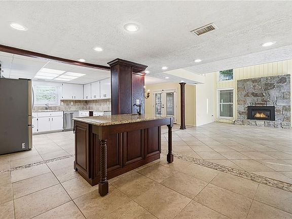 Discover the potential in this spacious 1970s home, located in the Stonemont neighborhood within the Brookwood High School district. While certainly livable as it is, this home offers an excellent opportunity for buyers looking to update and make it their own. The main level features a tile-floor living room with a gas fireplace, high ceilings, giving the space an open and welcoming feel. The kitchen offers updated stainless steel appliances and granite counter tops. A over sized laundry room provides extra storage and would work well as a home office, craft room, or flex space. Upstairs, you'll find three generously sized bedrooms for a home of this age with well-maintained hardwood floors. Although the age of the windows is unknown, they are relatively new. Through the gated driveway you'll find ample parking space. The rear facing garage has been thoughtfully converted into a heated and cooled bonus living area—ideal as a man cave, gym, media room, playroom, or guest hangout. Step directly from this space into the large, private backyard, fully enclosed with a solid wall/fence for added seclusion and privacy. Enjoy the in-ground pool with diving board and covered seating area—perfect for outdoor entertaining and summer fun. This home is clean, fun, and full of possibilities. Whether you're looking for a property you can update over time or envision a full transformation, the open concept floor plan unbeatable location make this a rare find.