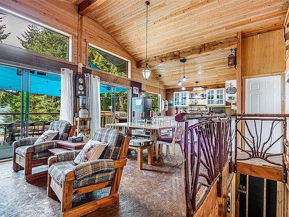 Here's a rare opportunity for a family or group purchase! The lake front is exceptional and has easy access for vehicles plus parking and services for 2 RV's in a large open gathering area. The home is mostly finished with 2 levels and 5 bedrooms (all have windows but no closets) and the upper bedrooms even have a loft for kids to bunk in, there's even a full bathroom. The building oozes of character and has a cozy, rustic feel with outstanding views of the lake up the Elk River Valley. An outside bathroom plus an outhouse and a covered BBQ area welcome group gatherings and celebrations. There's a staircase down to the log dock structure that is huge with swim platforms, boat slips, storage shed, decks for chairs and lounging. The property has been in the same family for over 50 years and has been modified over the years with solar panels, battery storage and generator water storage containers and more all for your future convenience.